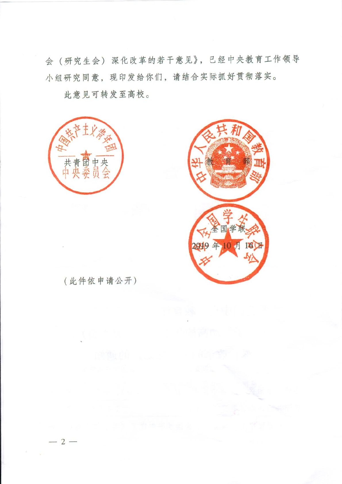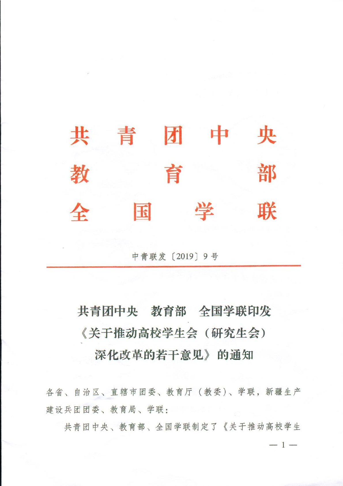 共青团中央 教育部 全国学联印发《关于推动高校学生会 (研究生会)深化改革的若干意见》 的通知
